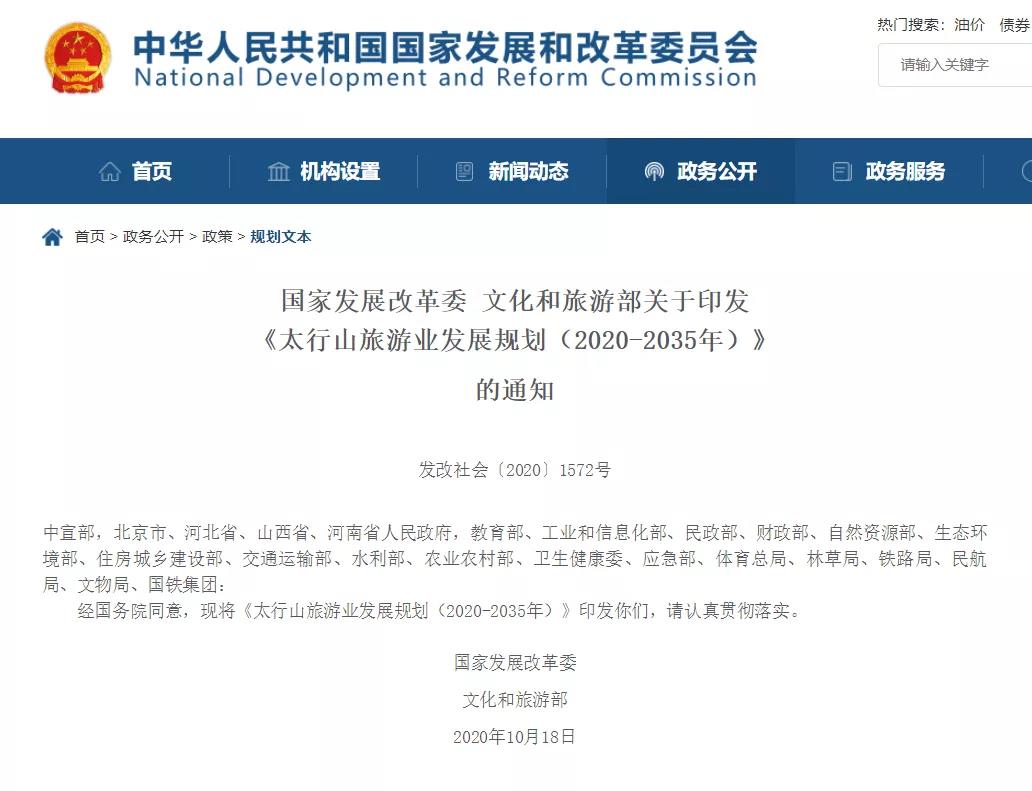 近日,國(guó)家發(fā)改委、文旅部聯(lián)合印發(fā)《太行山旅游業(yè)發(fā)展規(guī)劃(2020-2035年)》↓↓↓