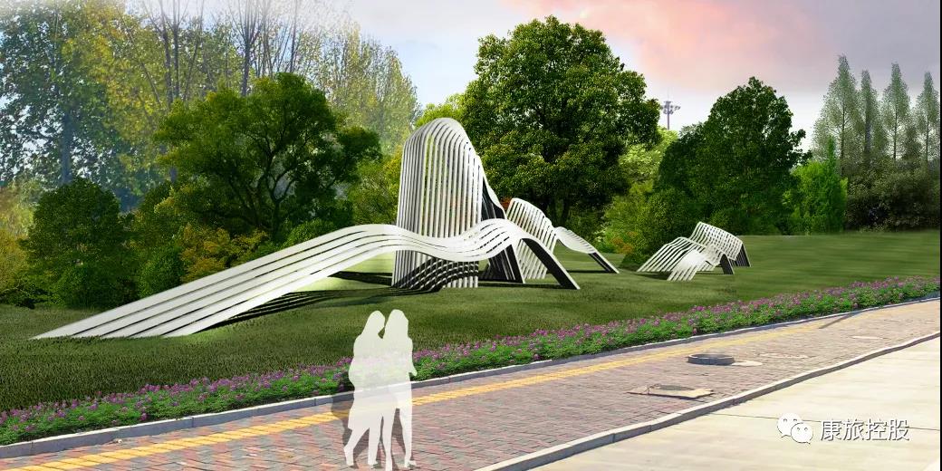 元氏山水文化具有深厚的人文性,雕塑采用較為抽象的設計手法,以簡約的線條呈現(xiàn)元氏山水的縮影,高低連綿、錯落有致,營造出縱深感、層次感,讓城市充滿自然韻律的同時,極富現(xiàn)代化氣息。