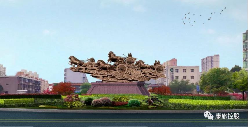主題性景觀雕塑在特定的環(huán)境中解釋空間場所的特有主題。位于入口空間的主題性雕塑,則能更好地詮釋空間的性質(zhì)與功能。如下圖所示:通過對行唐故郡文化遺址發(fā)掘中的戰(zhàn)車、戰(zhàn)馬等多元素的提取與借鑒設(shè)計出名為龍邑春秋大體量的戰(zhàn)馬雕塑。