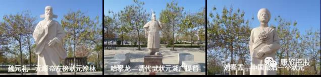 城市廣場是人們公共活動的中心,是城市的重要公共活動場所,也是集中體現(xiàn)城市文化底蘊(yùn)或地域特色的地方。城市廣場雕塑多以紀(jì)念歷史典故類為表現(xiàn)形式,或城市標(biāo)志性事件為表現(xiàn)形式。城市廣場無論大小,入口雕塑作品有一個共同的特性:即雕塑作品與市民之間的互動性。通過互動,廣場空間雕塑完善了社會和文化功能,再以其審美、精神、象征的內(nèi)容,展現(xiàn)著城市廣場最富有特色的人文傳統(tǒng)。如下圖所示:肅寧狀元湖森林公園中的狀元廣場。