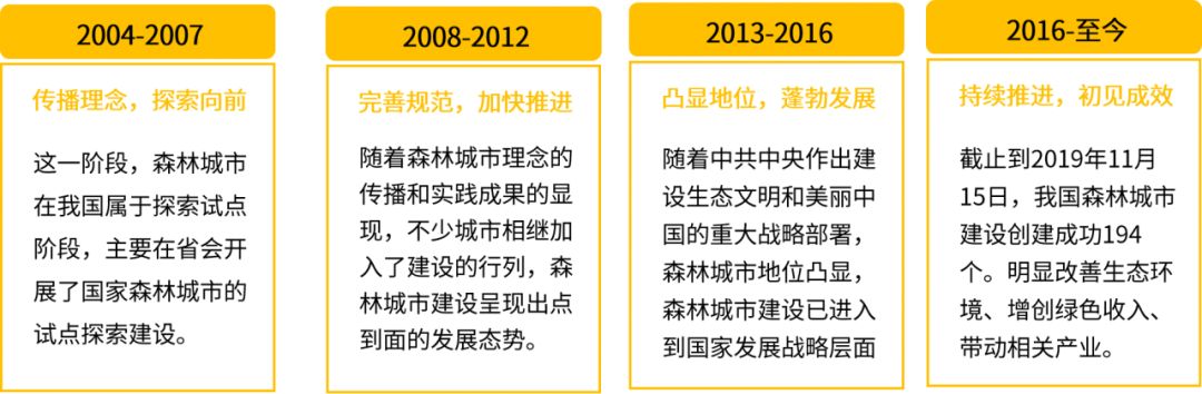2004年,全國(guó)綠化委員會(huì)、國(guó)家林業(yè)局啟動(dòng)了“國(guó)家森林城市”評(píng)定程序,并制定了《“國(guó)家森林城市”評(píng)價(jià)指標(biāo)》和《“國(guó)家森林城市”申報(bào)辦法》。同時(shí),每年舉辦一屆中國(guó)城市森林論壇。