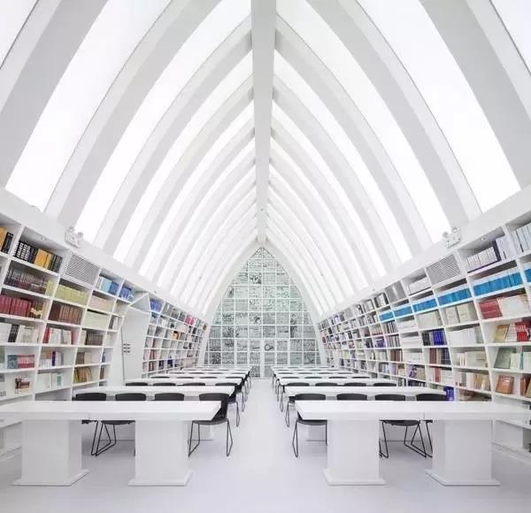 一層的鐘書閣,古典似迷宮,采用九宮格的設(shè)計(jì),每個(gè)空間都有不同的主題。二層的鐘書閣,明亮如圣殿,透明的穹頂和潔白的墻體,讓人不自覺就壓低了聲音,放慢了腳步。