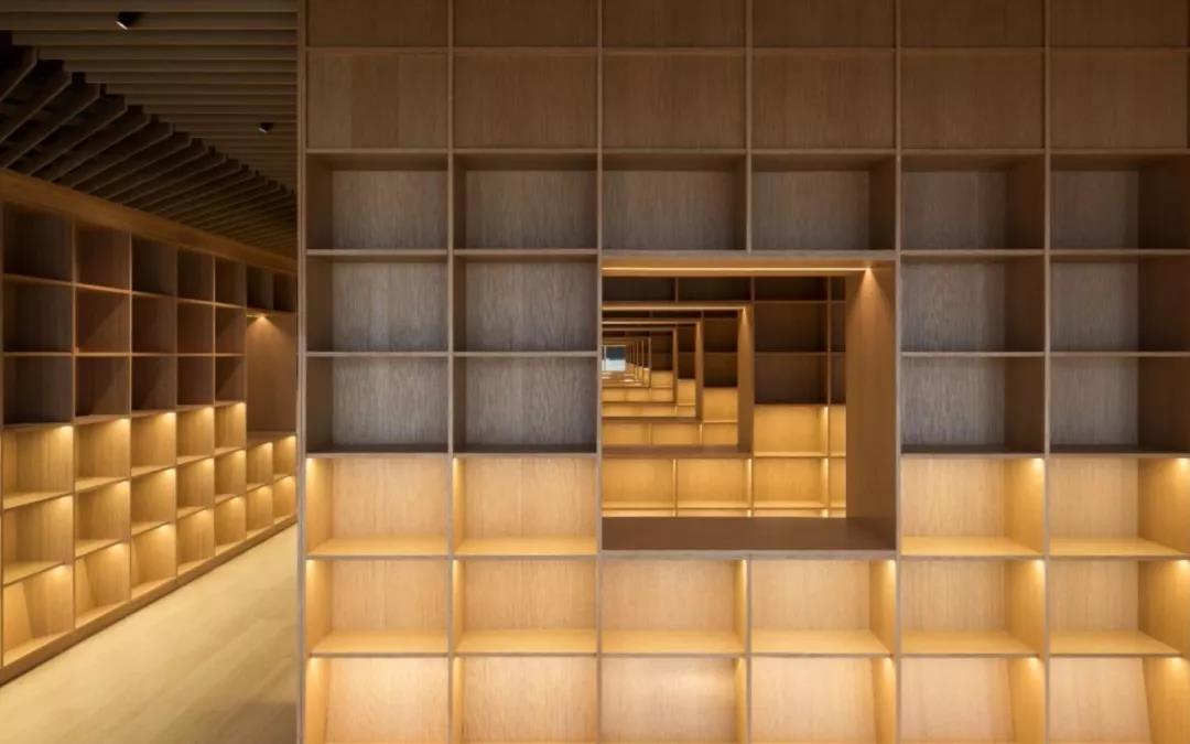 位于上海愛琴海購(gòu)物公園的書店“光的空間”,用樸拙的方形鏤空木制書架,為讀者打造了一個(gè)和諧的閱讀空間。