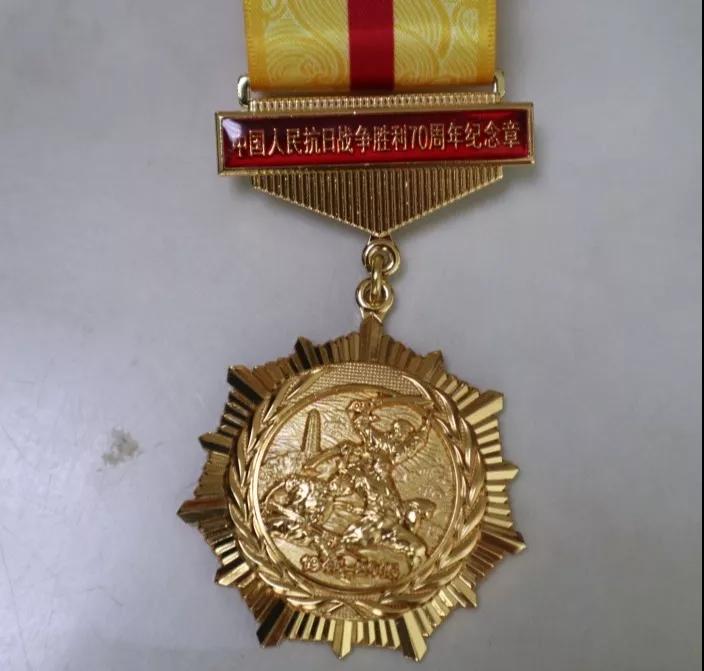 2015年,中共中央國(guó)務(wù)院、中央軍委給周老頒發(fā)了的“中國(guó)人民抗日戰(zhàn)爭(zhēng)勝利70周年紀(jì)念章”。