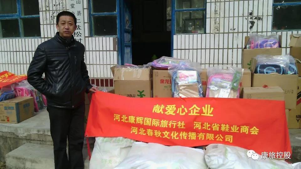 2015年,在石家莊市旅游局的帶領(lǐng)下,赴平山縣觀音堂鄉(xiāng)上盤松村慰問老區(qū)人民,為貧困山區(qū)兒童捐贈書包、學(xué)習(xí)用具等,共計(jì)3萬元整。