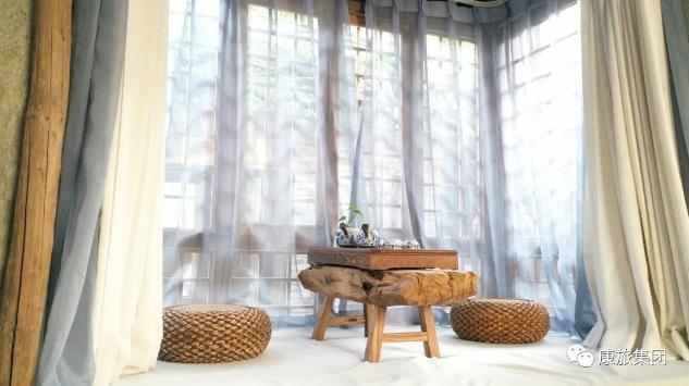 可依筱筑整體內(nèi)裝風(fēng)格采用田園質(zhì)樸風(fēng),門窗和所用家具皆是以原木、原石等生態(tài)環(huán)保材料純手工打造為主,造型上盡可能保留原生形態(tài),順其自然,盡顯田園生態(tài)。