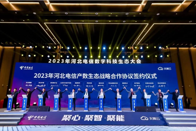 河北省通信管理局、河北省工業(yè)和信息化廳、雄安新區(qū)管委會、河北省數(shù)字經(jīng)濟聯(lián)合會、雄安集團等相關(guān)領(lǐng)導(dǎo)出席會議。大會上,河北電信三大數(shù)字能力正式發(fā)布,并為天翼視聯(lián)網(wǎng)聯(lián)合研發(fā)中心和智慧城市數(shù)據(jù)運營創(chuàng)新基地揭牌。河北電信還與各行業(yè)合作伙伴進(jìn)行了戰(zhàn)略簽約,并舉行了頒獎儀式。