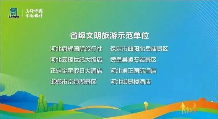 活動現(xiàn)場,舉行了國家級文明旅游示范單位、省級文明旅游示范單位、省級誠信文明示范單位的授牌儀式。隸屬于康旅控股集團的河北康輝國際旅行社被評為“省級文明旅游示范單位”。